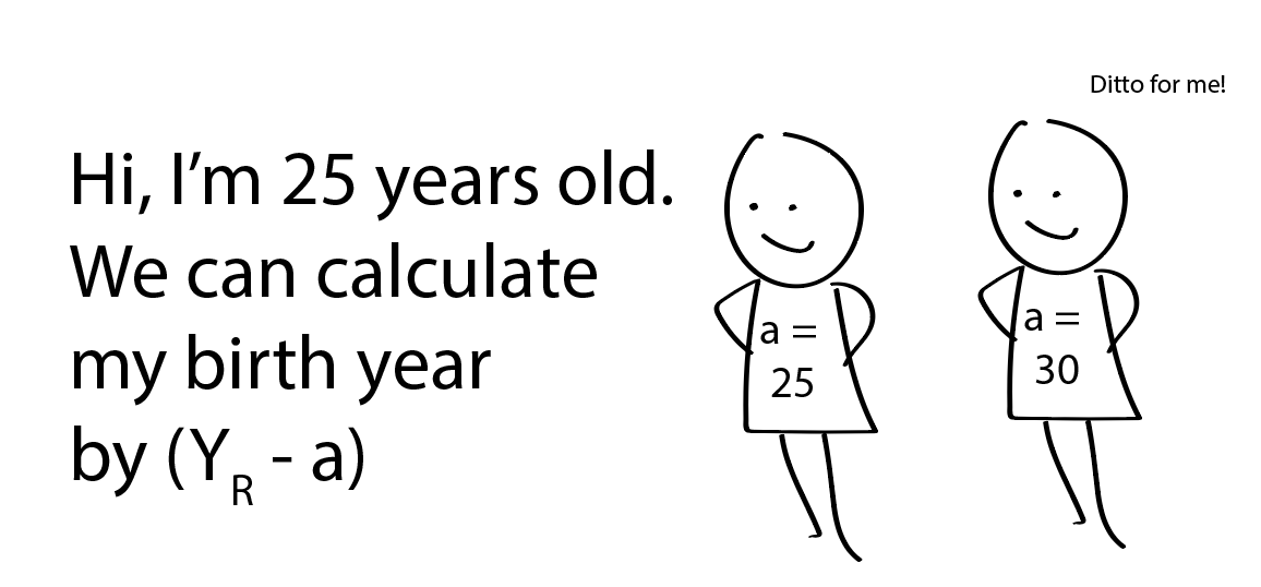 How do we account for the lag where the women name appearing in the song were chosen decades past. Well, given a range of release years AND the ages, we can back calculate to get a range of birth years: