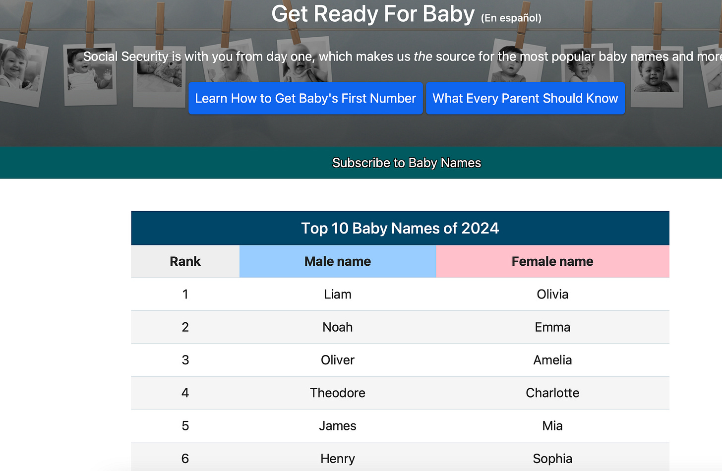 All those name popularity websites get their data from the official United States Social Security website. Even on the landing page, you can see that the government provides the most popular names for boys and girls: